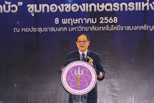 วันที่ 8 พฤษภาคม 2568 นายศุภชัย ใจสมุทร ผู้ช่วยรัฐมนตรีประจำกระทรวงการอุดมศึกษา วิทยาศาสตร์ วิจัยและนวัตกรรม (อว.) พร้อมด้วยคณะผู้บริหารกระทรวงฯ ลงพื้นที่ติดตามการขับเคลื่อนงานด้านการอุดมศึกษา วิทยาศาสตร์ วิจัยและนวัตกรรม หรือ อววน. ในพื้นที่จังหวัดปทุมธานี ในการนี้มี นายองค์รักษ์ ทองนิรมล รองผู้ว่าราชการจังหวัดปทุมธานี พลตำรวจโทคำรณวิทย์ ธูปกระจ่าง นายกองค์การบริหารส่วนจังหวัดปทุมธานี รองศาสตราจารย์ ดร.สมหมาย ผิวสอาด รักษาการในตำแหน่งอธิการบดีมหาวิทยาลัยเทคโนโลยีราชมงคลธัญบุรี รองศาสตราจารย์ ดร.เกียรติศักดิ์ แสงประดิษฐ์ ผู้อำนวยการสถาบันวิจัยและพัฒนา มหาวิทยาลัยเทคโนโลยีราชมงคลธัญบุรี พร้อมทั้งผู้บริหารหน่วยงานในสังกัดกระทรวงการอุดมศึกษาฯ หัวหน้าส่วนราชการในจังหวัดปทุมธานี อาจารย์ บุคลากร นักศึกษา และประชาชนในพื้นที่ ร่วมต้อนรับและเข้าร่วมกิจกรรมอย่างคับคั่ง ณ หอประชุม มหาวิทยาลัยเทคโนโลยีราชมงคลธัญบุรี